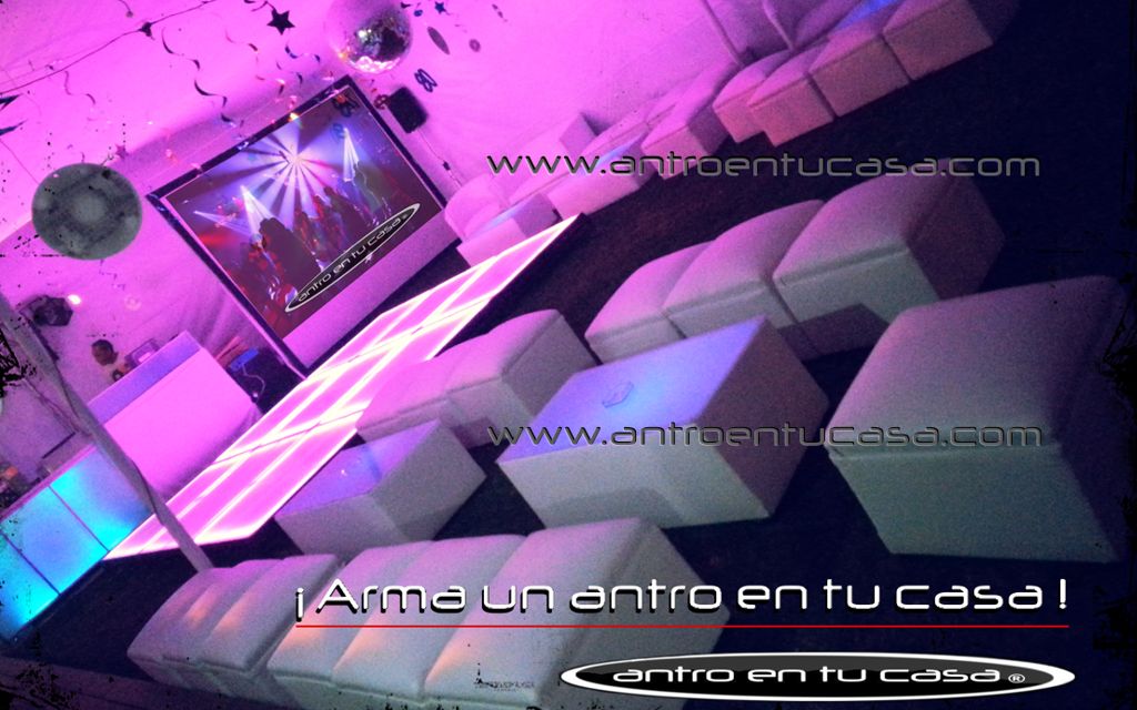 Paquetes para fiestas antro en casa ® en los cuales tienes la opción de elegir el tipo de mobiliario y accesories que lleve tu servicio todos lo paquetes de 30 personas incluyen D.J. mesero. mobiliario audio e iluminación, barra iluminada incluso puedes escalar con la gran cantidad de accesorios que ofrecemos todo esto desde $5,400.00 Pesos